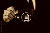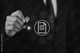 Documents management information system concept, Businessman using visual screen internet for Documents management information system and ERP program data directory in company, ERP document management