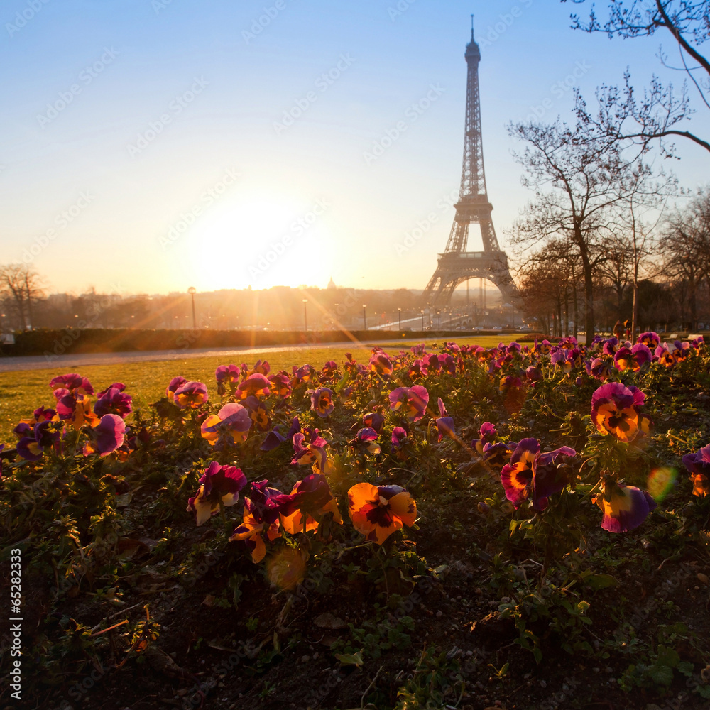 flowers near Eiffel tower, Paris, France