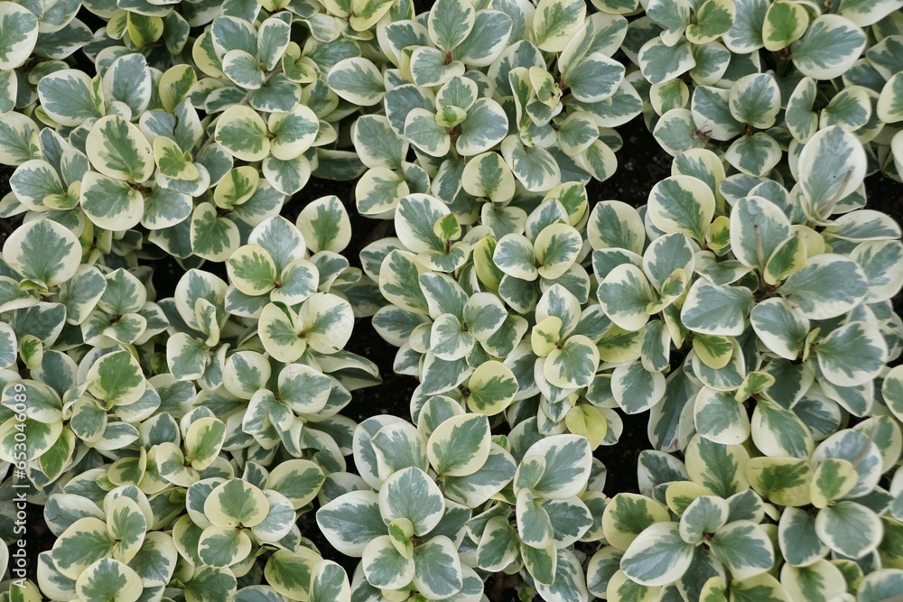 White and green leaves of Oval-Leaf Peperomia Variegata, a tropical plant
