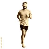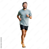 Male athlete fitness active lifestyle. Athletic strong man jumps, motivation and health. Runner workout warm-up in sportswear. Interval training, jogging.
