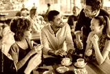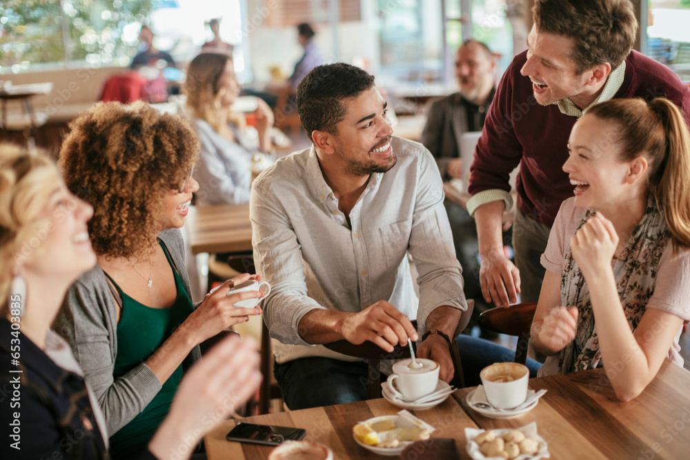 Group of young and diverse friends having coffee together in a cafe or bar
