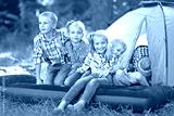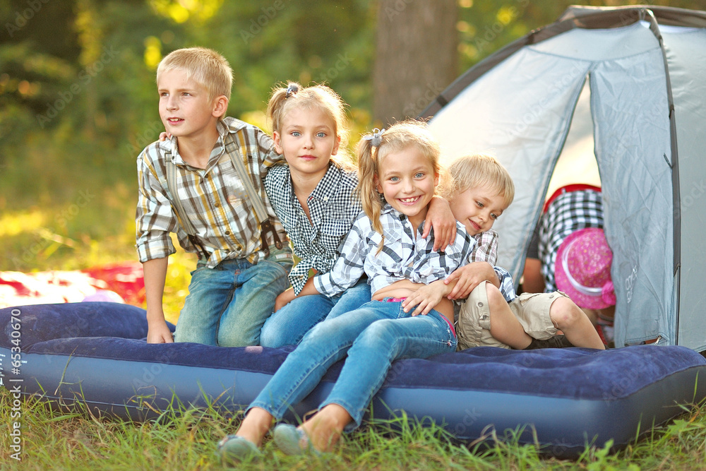 Portrait of young children on a camping holiday