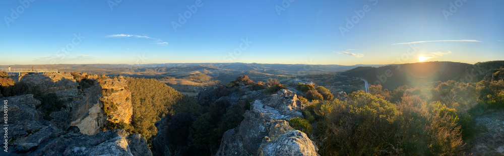 Sunset over the blue mountains, Sydney, Australia, NSW. Spectacular panoramic view from a lookout