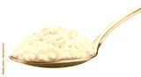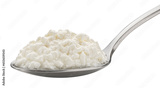 Spoon of homemade low fat yogurt isolated on white background, probiotic fermented sour milk