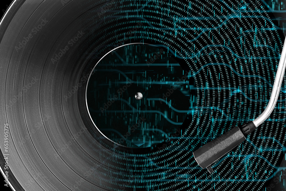 Generative music, artificial intelligence AI concept. Internet, programming, abstract background