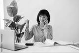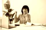 Excited successful employee businesswoman talking on smartphone say yes doing winner gesture, clench fist, sit at office desk with laptop. Achievement career, making a deal, business success concept