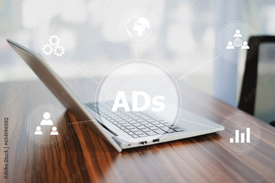 Ads Programmatic Advertising concept, digital marketing concept, online advertisement, ad on website and social media.