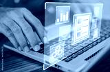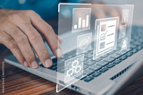 DMS is document management concept, Man using a computer to document management in online documentation database and digital file storage system or software, records keeping, database technology