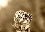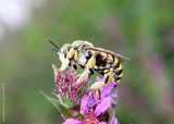 Abeille qui butine une fleur mauve, abeille solitaire de la famille des Megachilidae. - Anthidie Florentine - pollinisateur et biodiversité dans le jardin