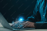 Businessman working on stock investment strategy on computer. Stock market. Business growth. Trading progress analysis information with stock charts invest in trading