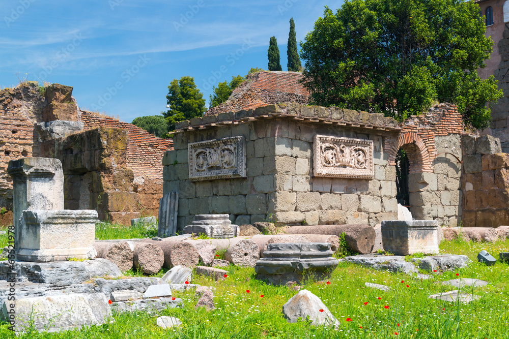 Ruined ancient houses in Roman Forum, Rome, Italy