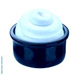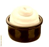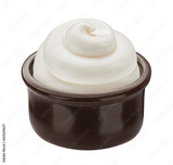 Sour cream swirl in small clay pot isolated on white background