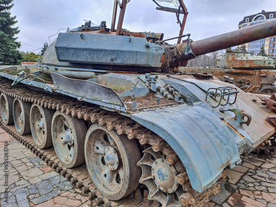 Russian tank destroyed by the Ukrainian army in Ukraine. War in Ukraine
