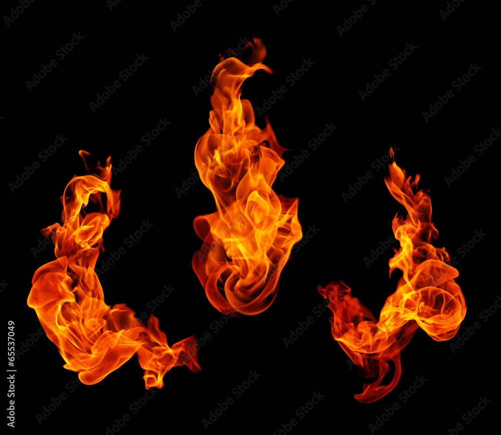 Fire flames collection isolated on black background