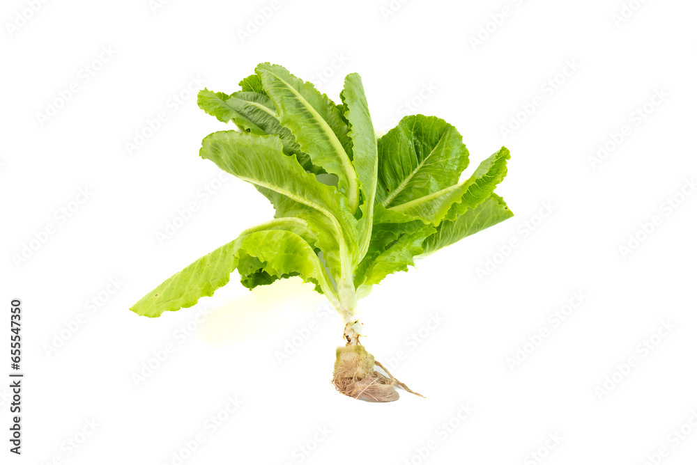 Cos lettuce hydroponic vegetable isolated on white background, fresh salad vegetable vegan food.