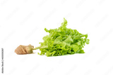 Green oak lettuce hydroponic vegetable isolated on white background, fresh salad vegetable vegan food.