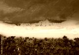 Aerial top drone view on sand beach,palm tree and ocean on the caribbean island of Martinique, France. Famous Plage des Salines beach.