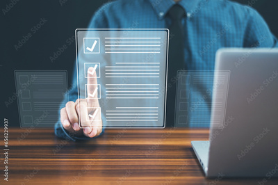 Businessman check box on quality document control checklist and business approve project concept.