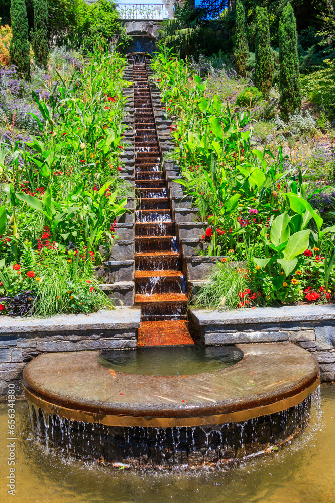Italian flower water stairs on the island of flowers Mainau on Lake Constance, Germany