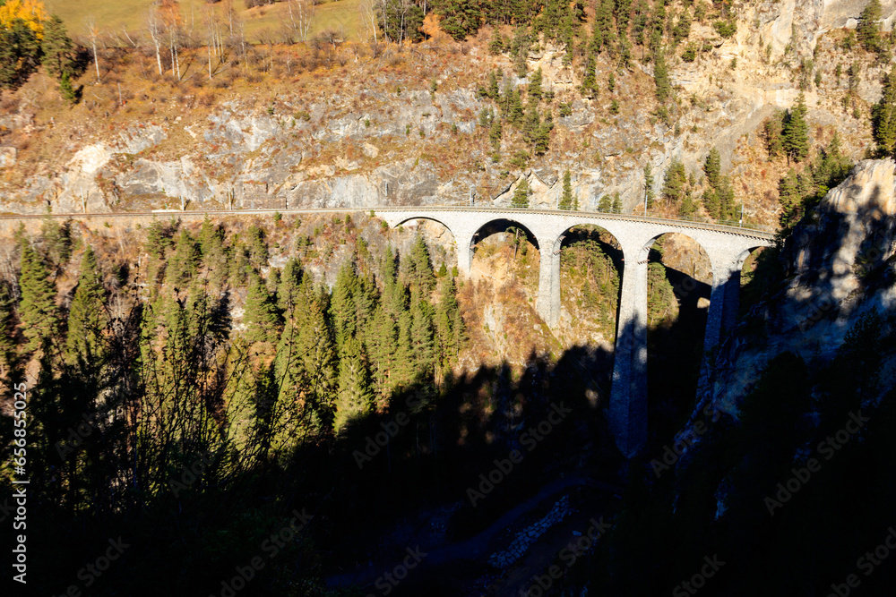 View of Landwasser Viaduct, Rhaetian railway, Graubunden in Switzerland