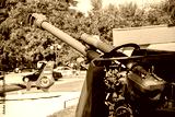 Artillery antitank and anticraft howitzer with large caliber, exposed at international arms fair in Belgrade, Serbia