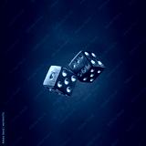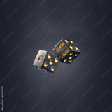 Two black dice are falling on a dark gray background. Photo with bokeh.