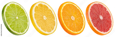 Mix of orange, grapefruit, lime and lemon slices isolated on white background