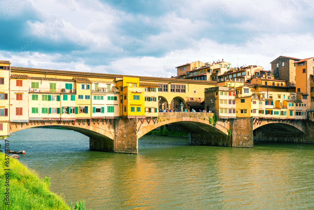 Ponte Vecchio over Arno river in Florence. Vintage photo.