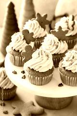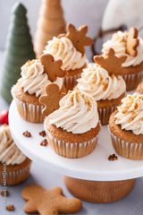 Gingerbread cupcakes for Christmas with gingerbread cookies and buttercream frosting