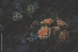 All Saints Day in cemetery in nostalgic autumnal time, floral bouquet
