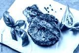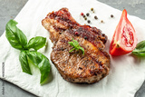 Grilled pork loin steak. banner, menu, recipe place for text, top view