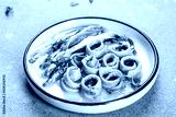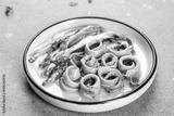 Anchovies marinated in vinegar with olive oil, Food recipe background. Close up