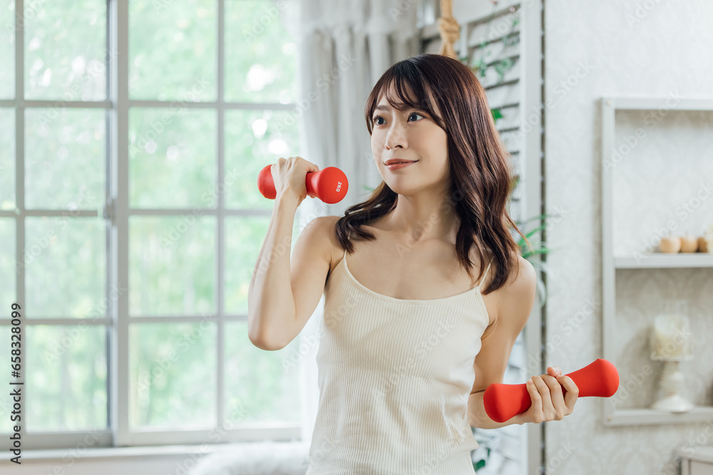 ダンベルでトレーニングをする女性