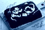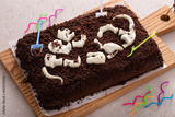 Chocolate cake for a kids birthday with edible dinosaur bones