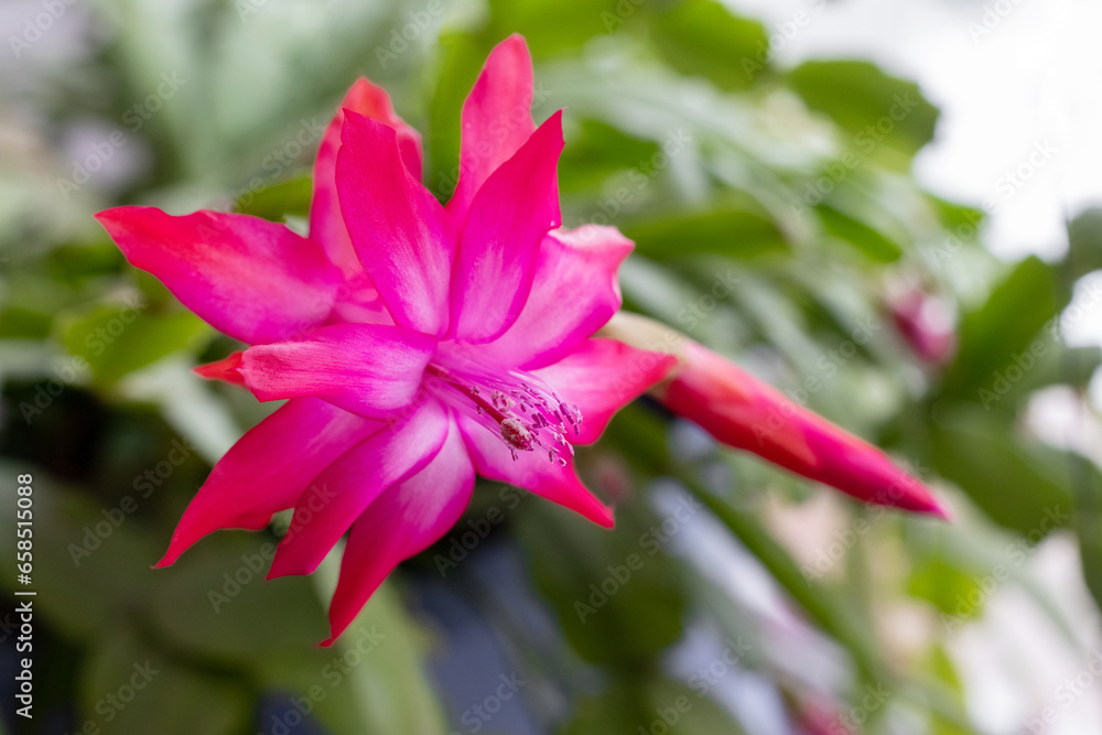 Thanksgiving Cactus (Schlumbergera bridgesii) in a room with a light background