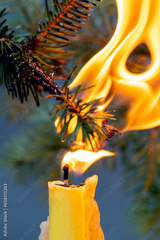 A branch of a Christmas tree caught fire from a candle, a fire due to non-compliance with safety rules