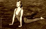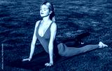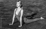Meditation in morning sunny day. Fitness lady outdoors, yoga stretching exercises. Woman practicing yoga outdoors. Yoga in the park. Woman doing yoga in morning park