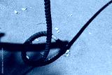 Thick hemp rope on the pier in the seaport.