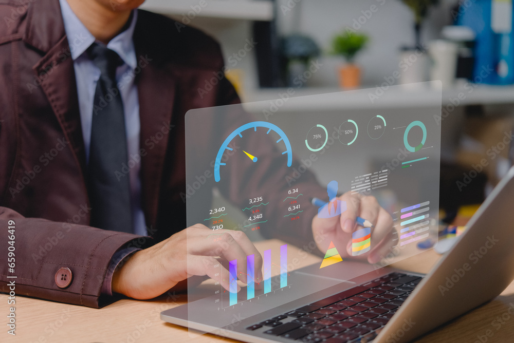 Business analytics dashboard with KPI, key performance indicators and reports management charts and data report analysis evaluation improvement intelligence planning
