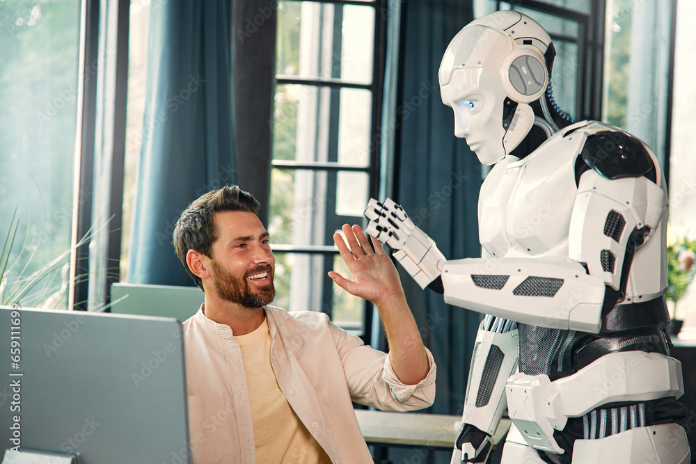 Robot and man at home
