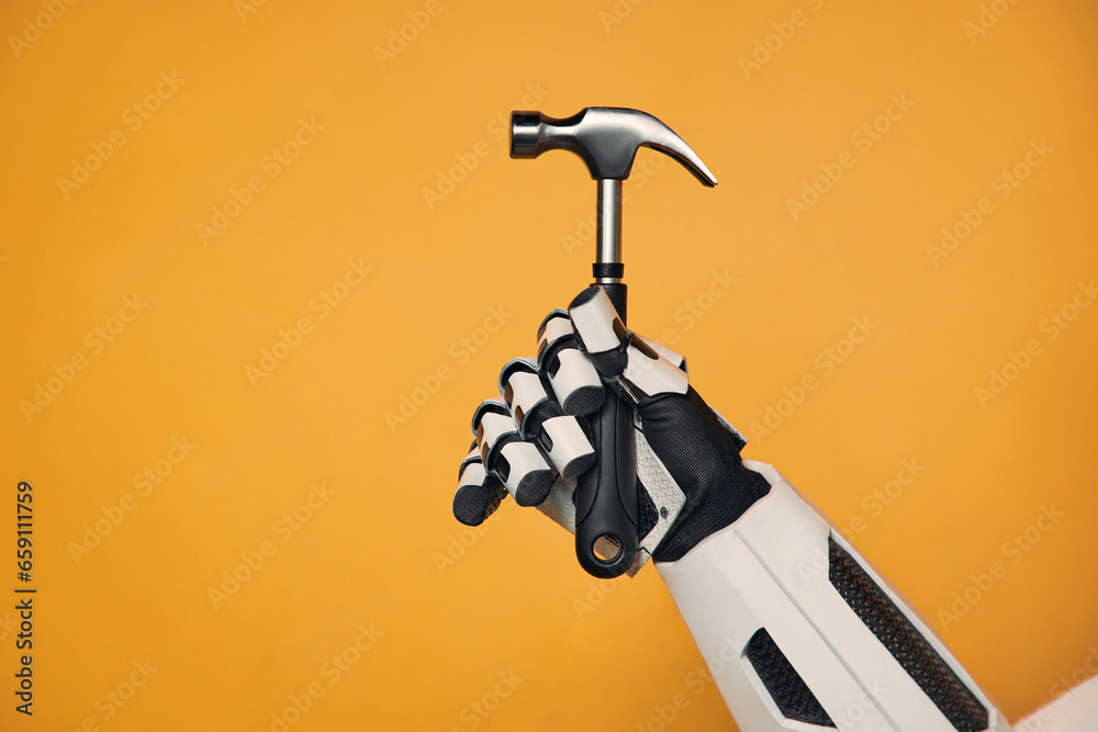 Robot isolated on orange background