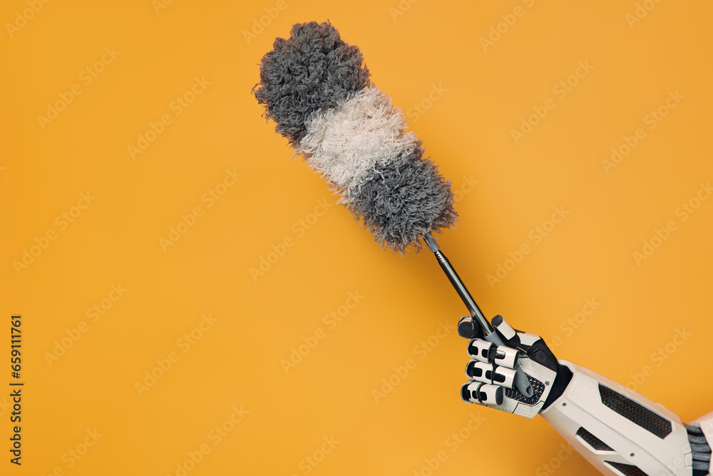 Robot isolated on orange background