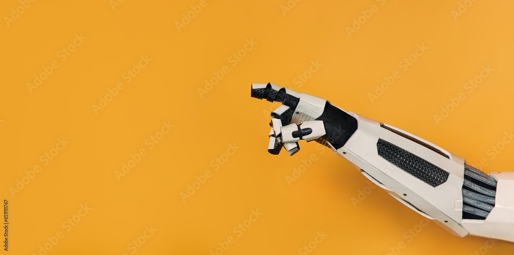 Robot isolated on orange background