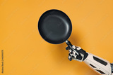 Robot isolated on orange background