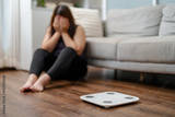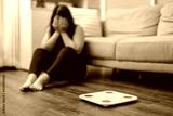 Depressed sadness overweight woman failure in weight loss.