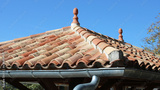 Toiture en tuile canal ou romane, épis de toiture et gouttière en zinc