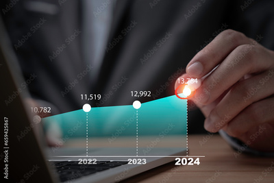 Businessman hand drawing virtual increasing graph from computer laptop, Business investment profit and deposit dividend saving growth in 2024 concept.