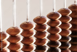 A vintage wooden abacus with beads and metal wire, perfect for counting