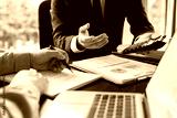 Businesswoman read business document and use calculator to working about calculating tax in office..