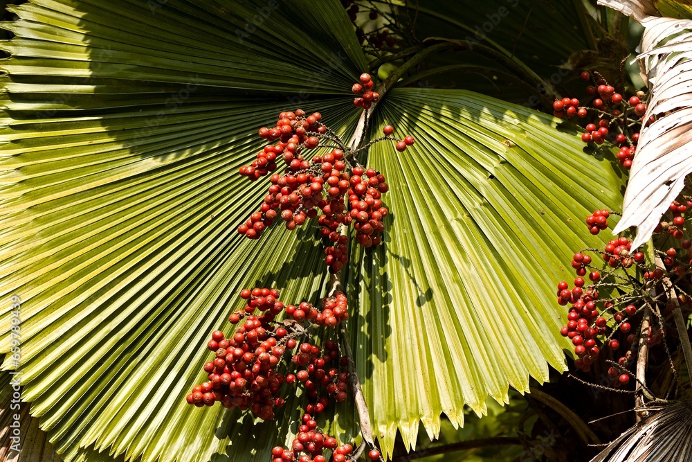 Ruffled Fan Palm (Licuala grandis) in Taman Negara Bako National Park. Sarawak. Borneo island. Malaysia.